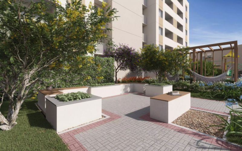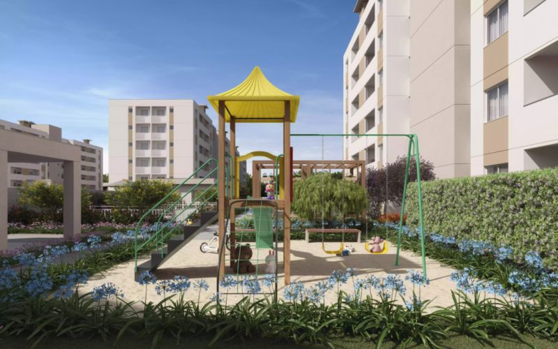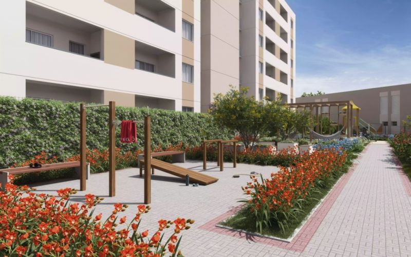O apartamento oferece 2 quartos, uma bela cozinha, varanda com vista e vaga de garagem. O condomínio conta com playground, salão de festas, piscina, academia externa, horta coletiva, deck e um espaço zen.