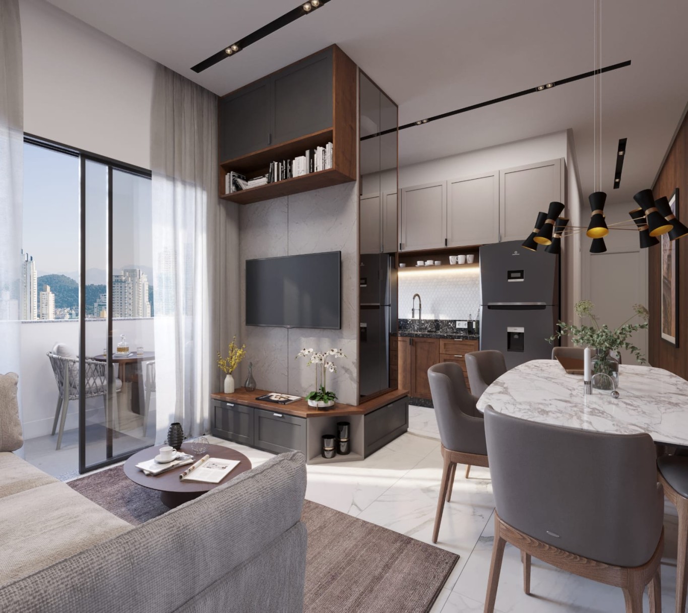 O apartamento conta com 2 quartos, sendo 1 suíte, banheiro, sala aconchegante e varanda com uma vista privilegiada.