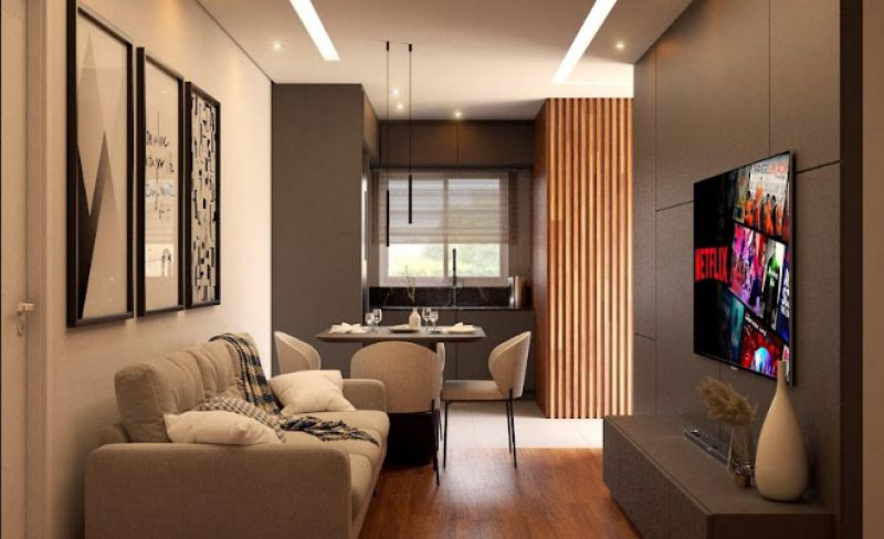 O apartamento conta com 2 quartos, banheiro, sala aconchegante e cozinha.