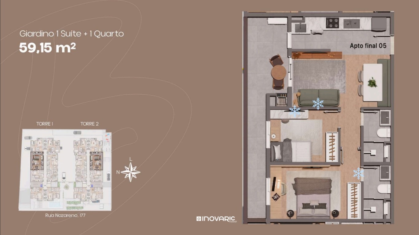 A área de lazer é um verdadeiro clube: são mais de 10 ambientes equipados e decorados, como piscina com prainha e aquecimento, academia, coworking, brinquedoteca, salões de festas e gourmets, playground, petplace, bicicletário, entre outros. Tudo isso em áreas comuns climatizadas, com energia solar e carregador para carro elétrico, reforçando o compromisso com conforto, economia e sustentabilidade.
