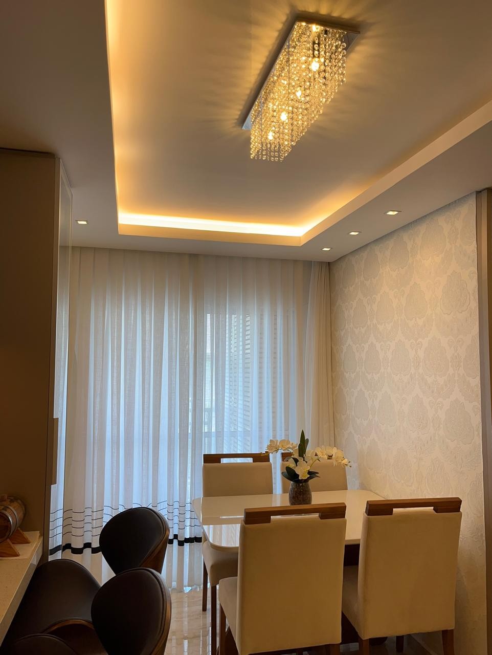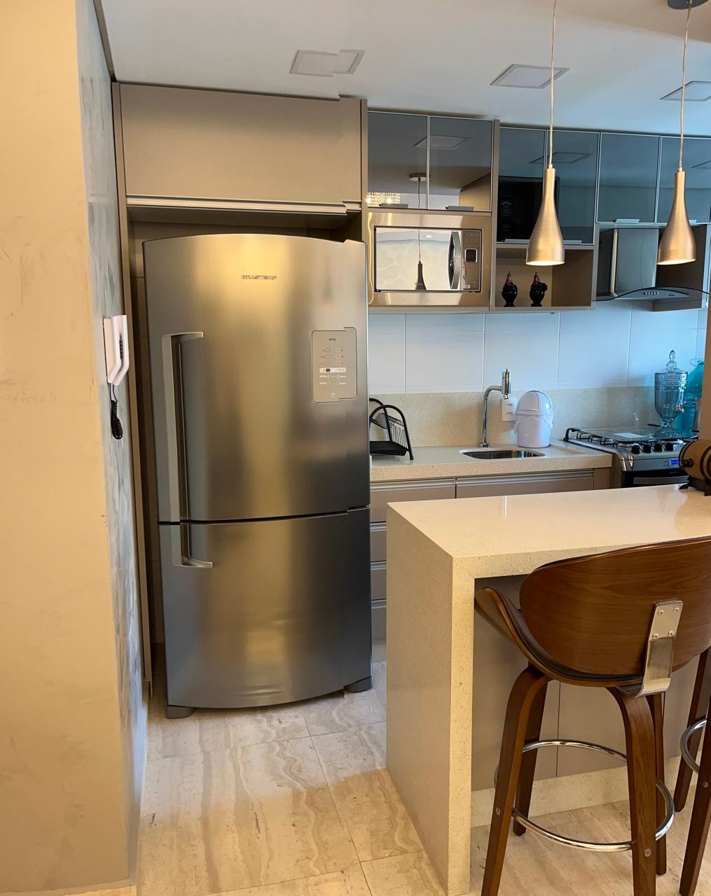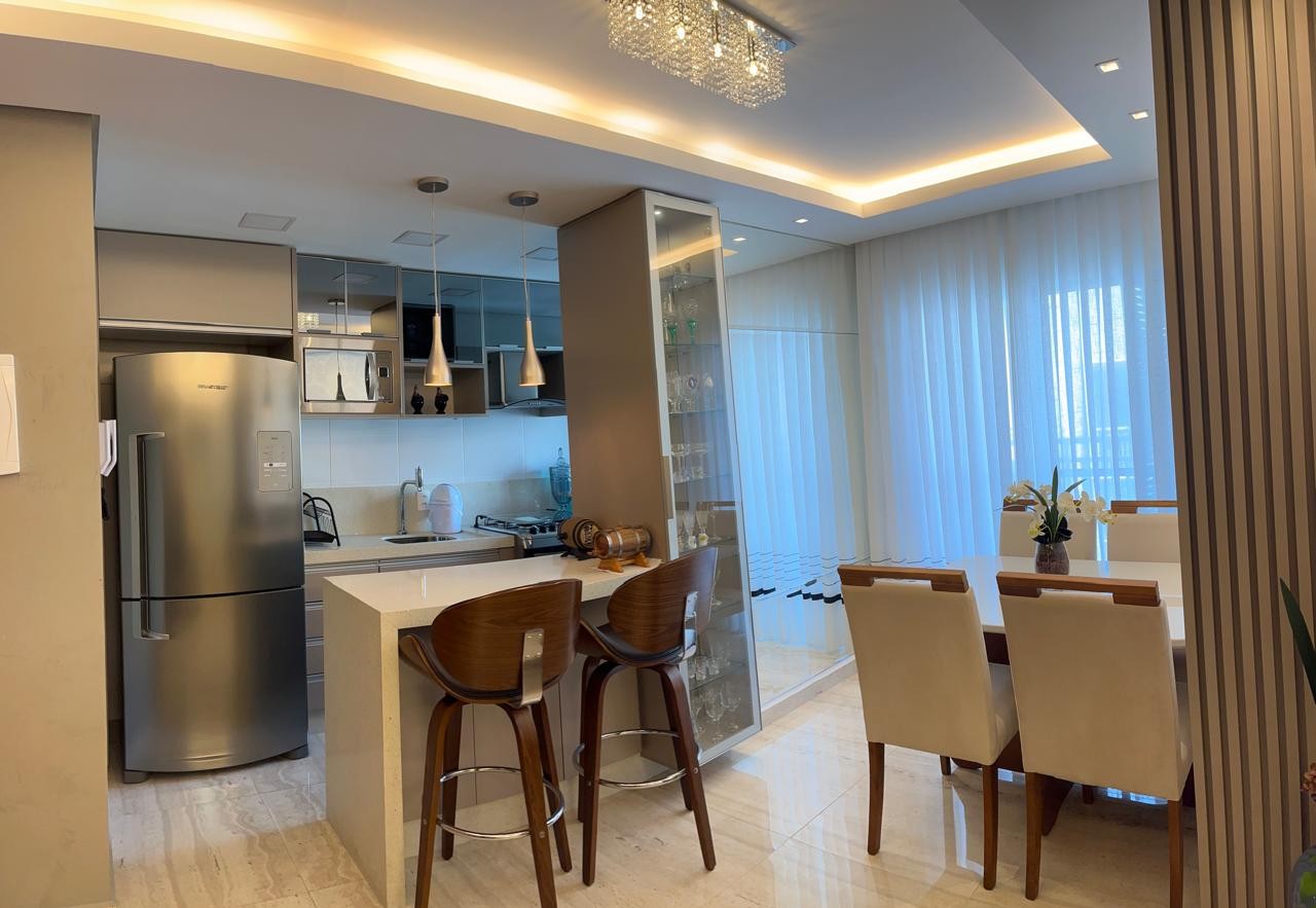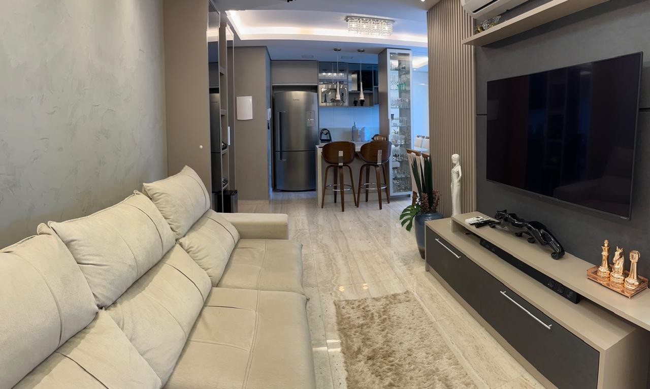 Totalmente mobiliado e pronto para morar, o imóvel conta com 2 dormitórios, ambientes integrados de sala de estar e jantar, cozinha estilo americana e uma ampla sacada com churrasqueira, ideal para relaxar e receber amigos.
