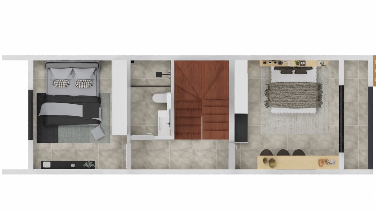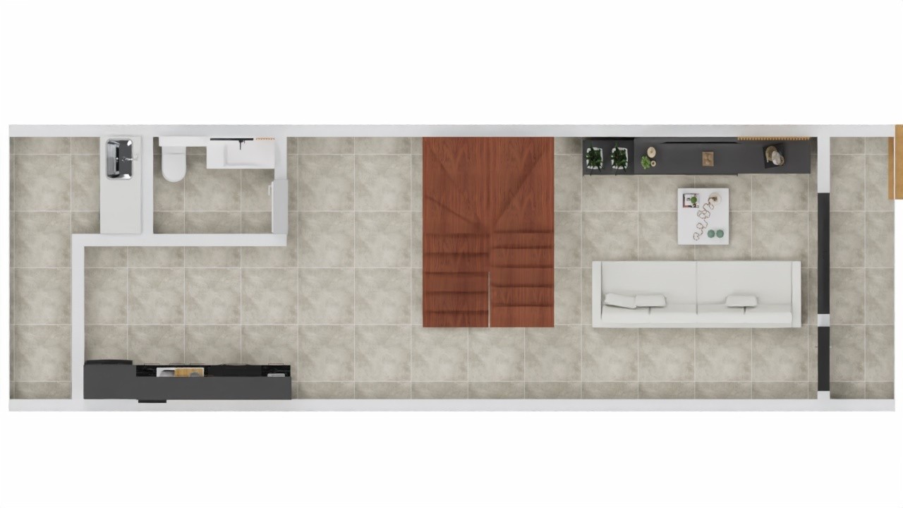 Piso térreo: Dois Dormitórios, Sala de jantar e estar integradas, cozinha, lavanderia, Banheiro, varanda com churrasqueira