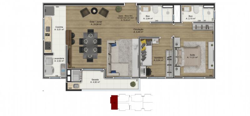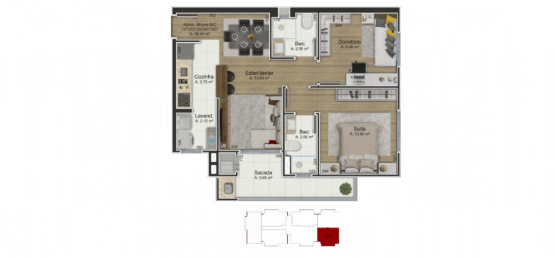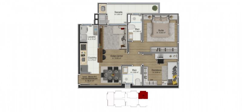 Com apartamentos a partir de 60 m² com Suíte + 1 Dormitório, sacada gourmet e lavanderia separada, o projeto entrega funcionalidade e elegância em plantas compactas e bem distribuídas. Há ainda opções de plantas maiores com até 2 dormitórios + suíte e coberturas com mais de 200 m².