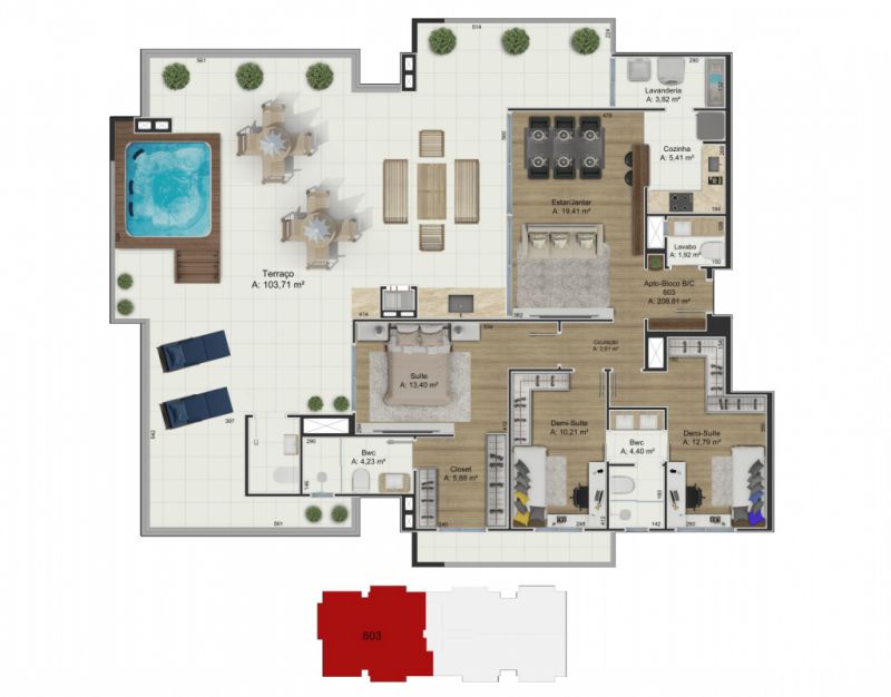 A primeira fase já foi entregue com decorado disponível para visitação. A Torre Sul, segunda fase do empreendimento, já está em lançamento com entrega prevista para 2028, mantendo o padrão elevado de projeto e acabamentos.