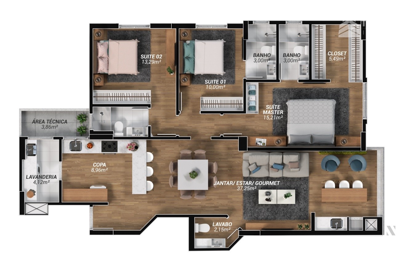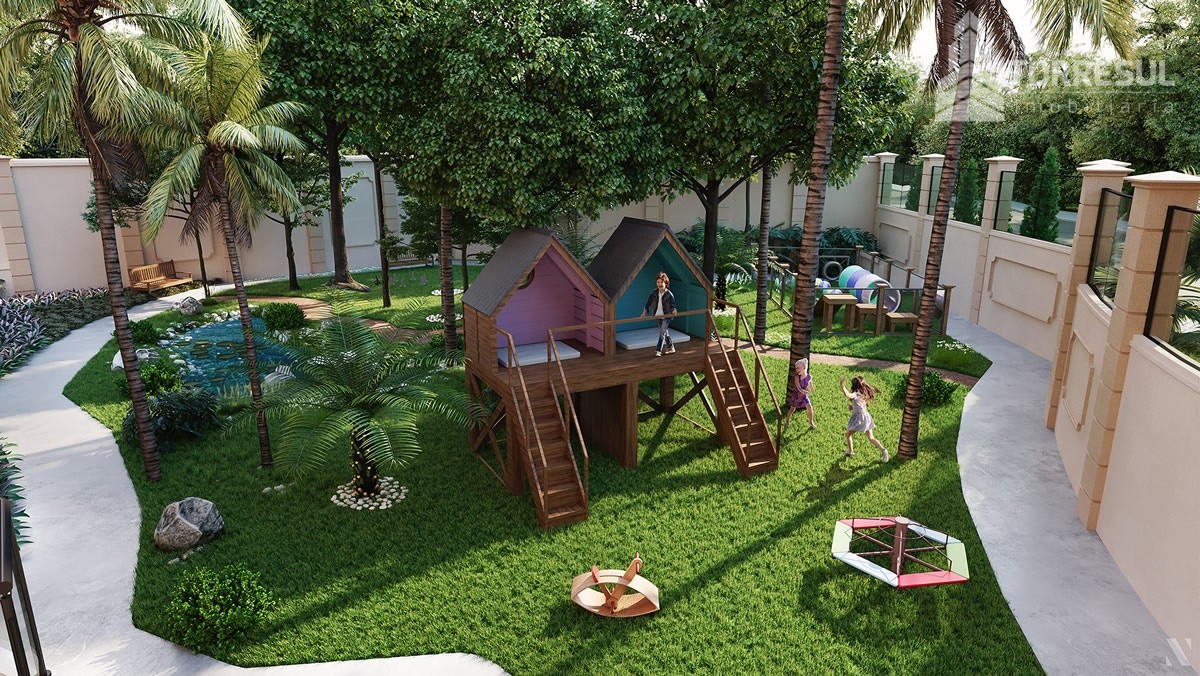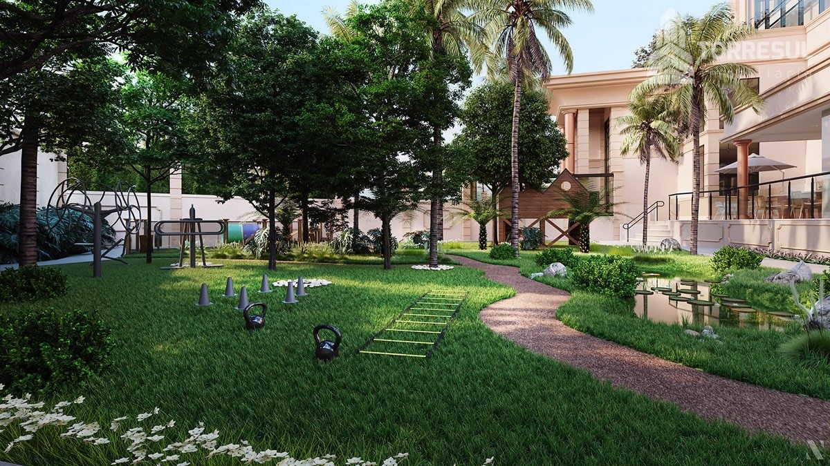 Desfrute de uma infraestrutura de lazer completa, digna de um castelo: piscina com borda infinita e vista para o bosque, academia, salão de festas com sala de jogos e cozinha gourmet, além de um bosque com 400m² de área de preservação. Sua segurança é prioridade, com biometria nas áreas comuns e sistema inteligente de segurança monitorada.