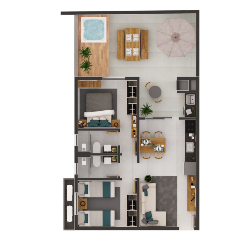 Com piso porcelanato, persianas integradas, infraestrutura para ar-condicionado split, acabamento em gesso e pontos para água quente, cada detalhe foi pensado para oferecer mais conforto e praticidade no seu dia a dia.