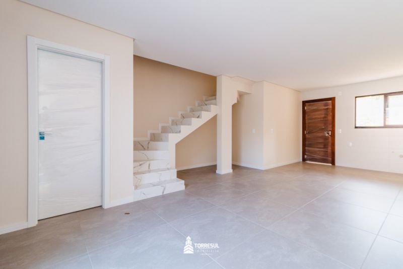 São 3 dormitórios, sendo 1 suíte, além de 2 banheiros ao todo. Na área interna, sala e cozinha são integradas, criando um ambiente social amplo e funcional, perfeito para quem gosta de receber amigos ou acompanhar a rotina da família enquanto cozinha. O piso em porcelanato facilita a limpeza e traz um visual moderno. A casa conta ainda com lavanderia/área de serviço e iluminação natural em todos os cômodos.