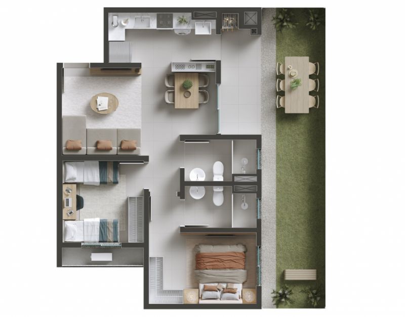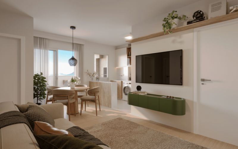 Composto por 2 torres residenciais com 16 pavimentos cada, o Evolution oferece apartamentos de 2 e 3 dormitórios, todos com suíte, sacada com churrasqueira a carvão e plantas inteligentes de até 70,34 m² privativos, além de opções com giardino privativo de até 22 m². Os ambientes são bem distribuídos, com acabamentos de qualidade, infra para ar-condicionado, esquadrias em alumínio, piso laminado nas áreas quentes e porcelanato nas áreas molhadas.