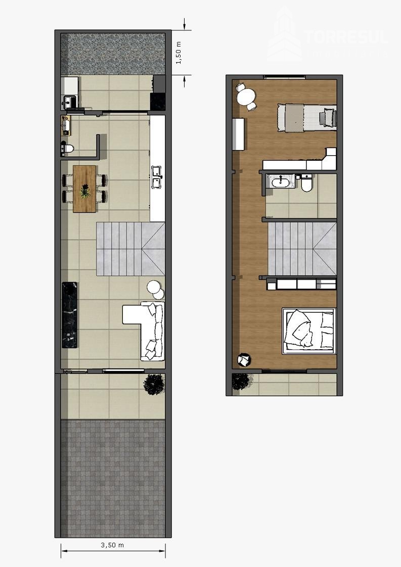 Casa Geminada 2 Quartos Santa Catarina 72m²