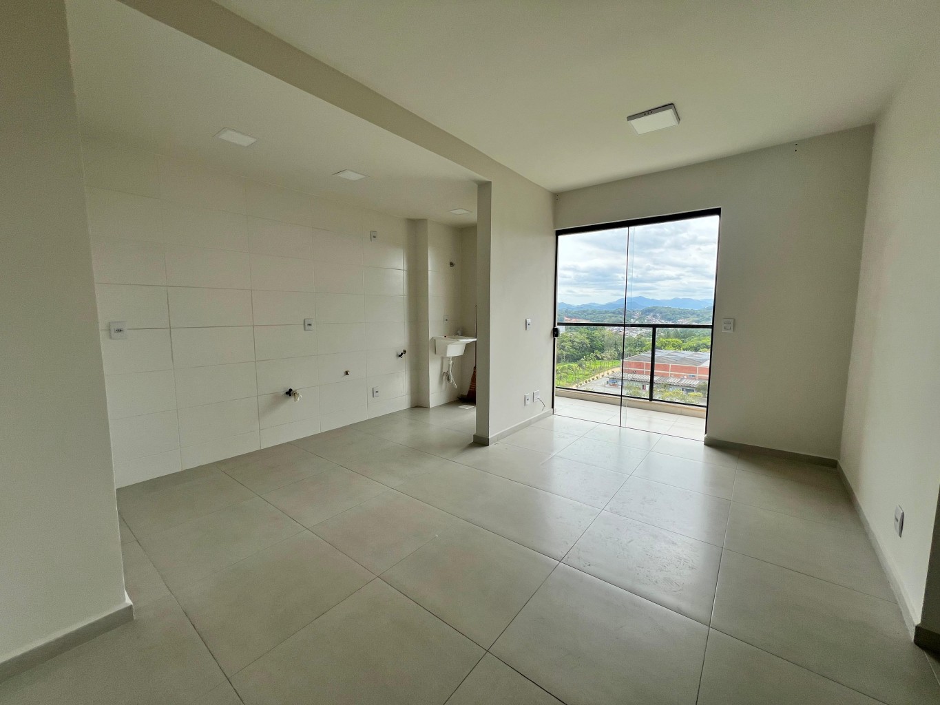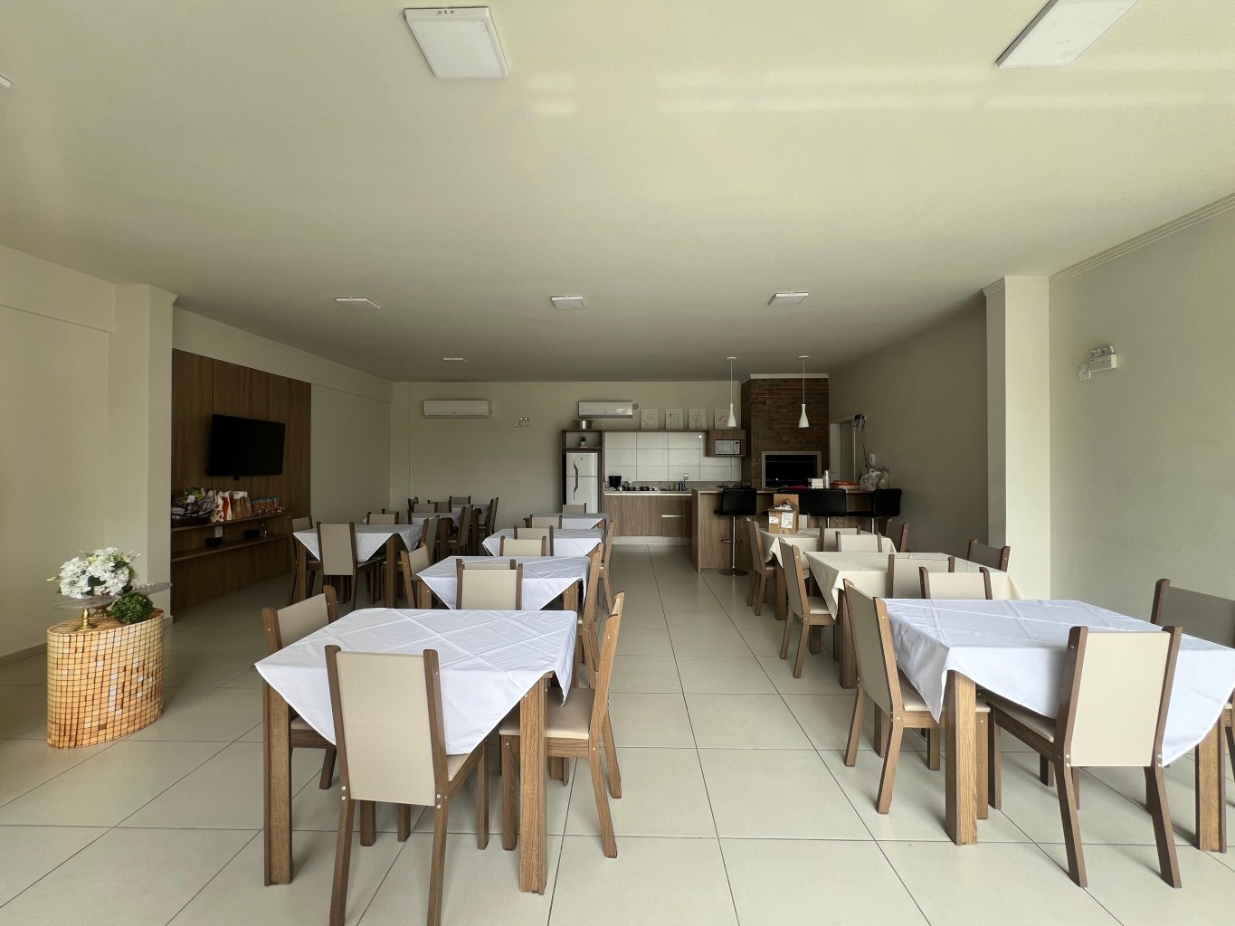 O apartamento conta com 2 dormitórios, sendo 1 suíte, além de 2 banheiros ao total. A área social foi pensada para o dia a dia, com sala de estar, sala de jantar e cozinha integradas, criando um ambiente funcional e acolhedor. A sacada com churrasqueira amplia as possibilidades de uso, seja para um churrasco em família, seja para relaxar no fim do dia.
