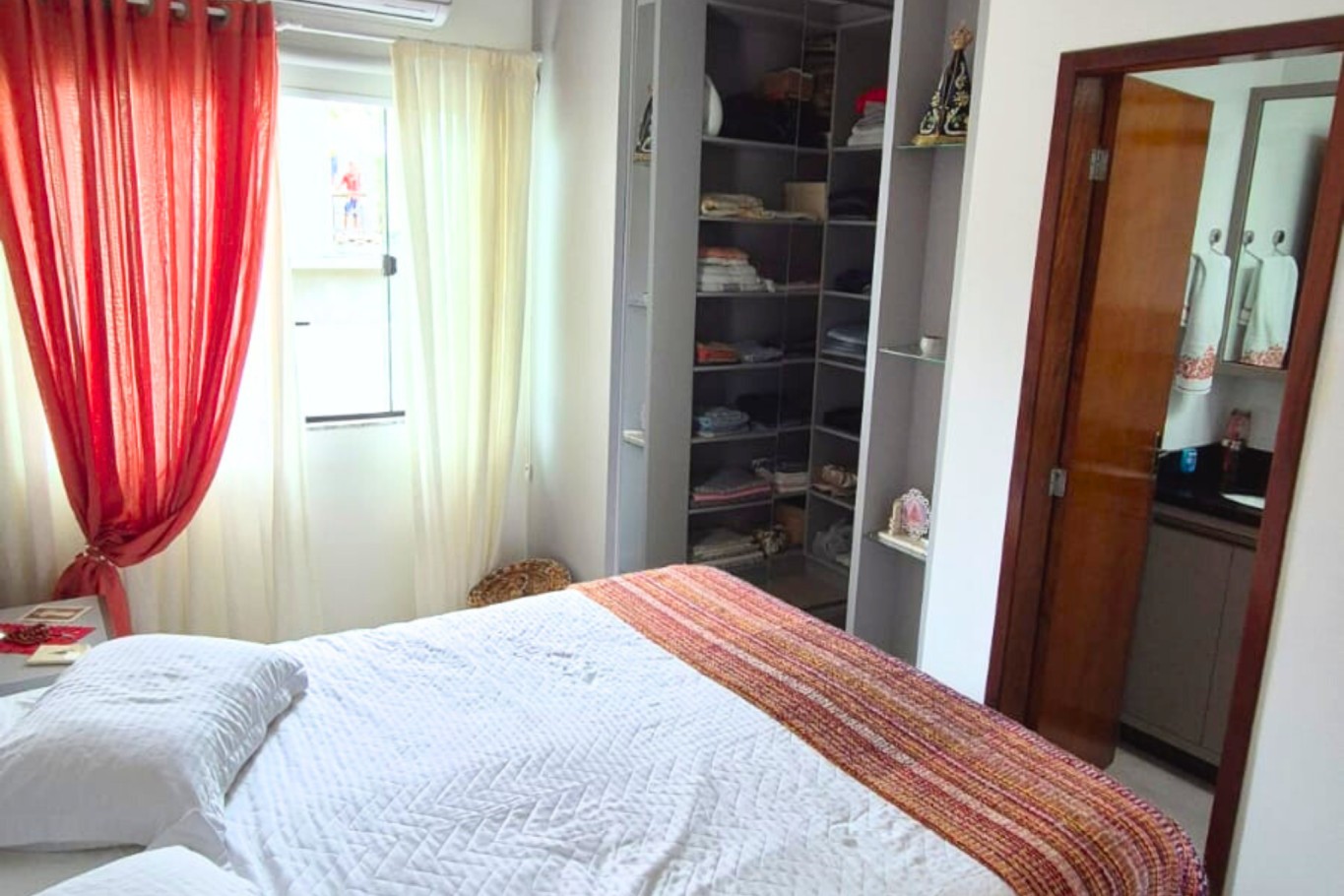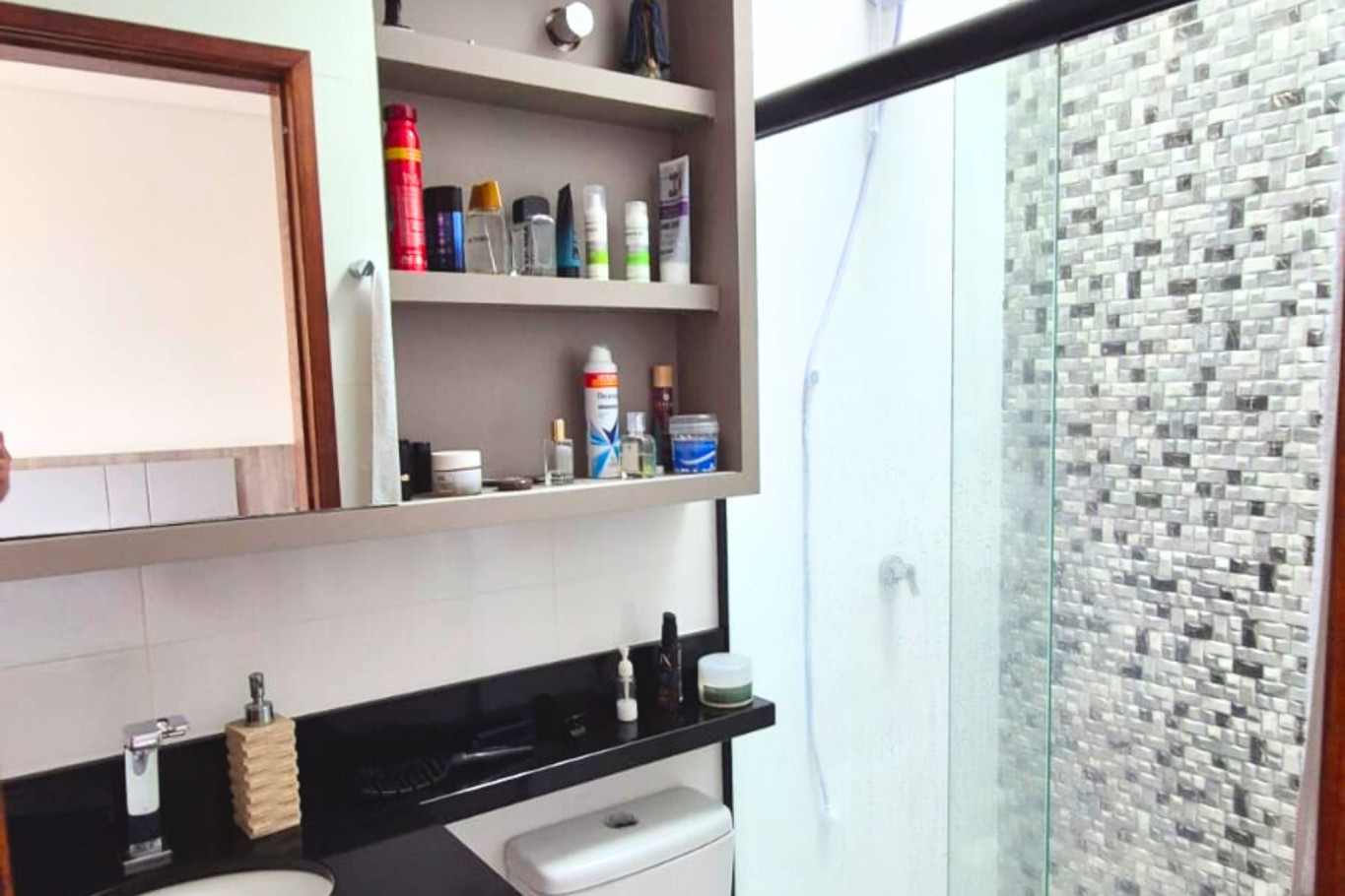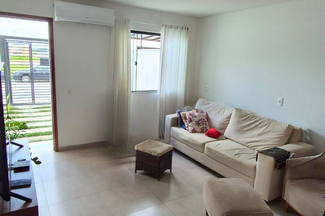 São 2 suítes com móveis planejados, sendo uma delas com closet, o que traz mais organização e armazenamento para o quarto principal. No total, o imóvel conta com 2 banheiros, garantindo conforto tanto para o casal quanto para receber visitas. A cozinha é totalmente equipada, com móveis sob medida, cooktop, forno e micro-ondas, e a casa já conta com ar-condicionado na sala e nos quartos, deixando os ambientes prontos para uso e muito mais agradáveis em qualquer estação.