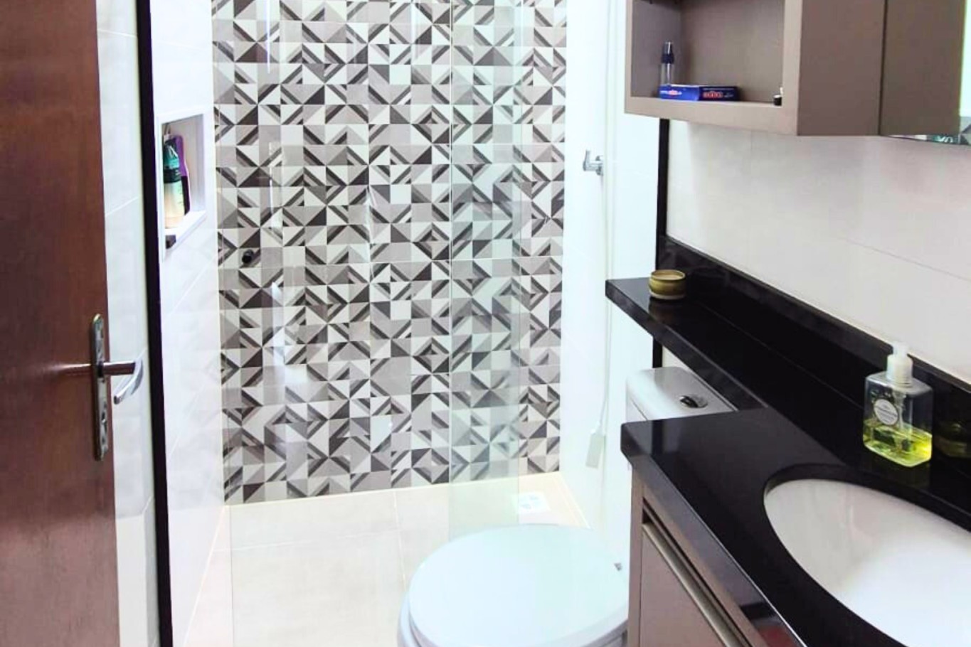 O piso em cerâmica facilita a limpeza e manutenção, e a lavanderia/área de serviço separada ajuda a manter a casa mais organizada. A presença de sacada traz um espaço extra de respiro e iluminação. Os móveis planejados em praticamente todos os ambientes aproveitam muito bem cada cantinho, dando sensação de casa maior e mais funcional.