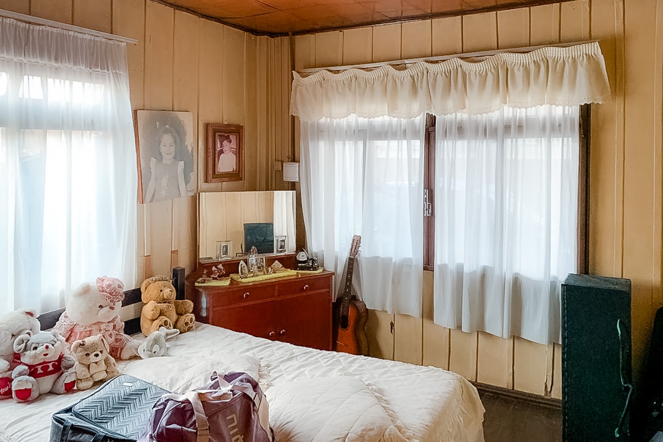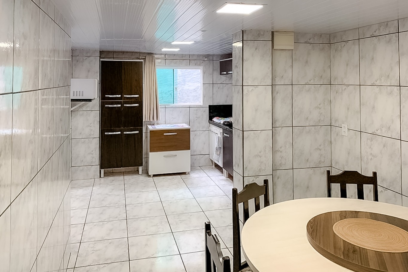 No piso superior, em alvenaria, você tem 3 dormitórios, cozinha, sala de TV, sala de jantar e banheiro. É um pavimento mais estruturado, com boa divisão dos ambientes, perfeito para uso como casa principal.