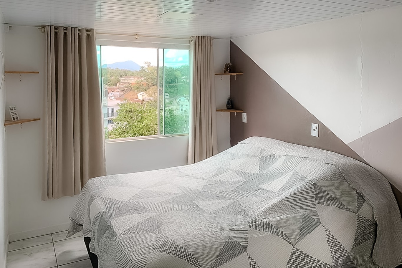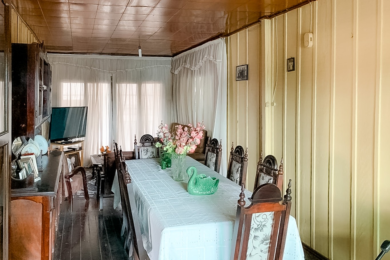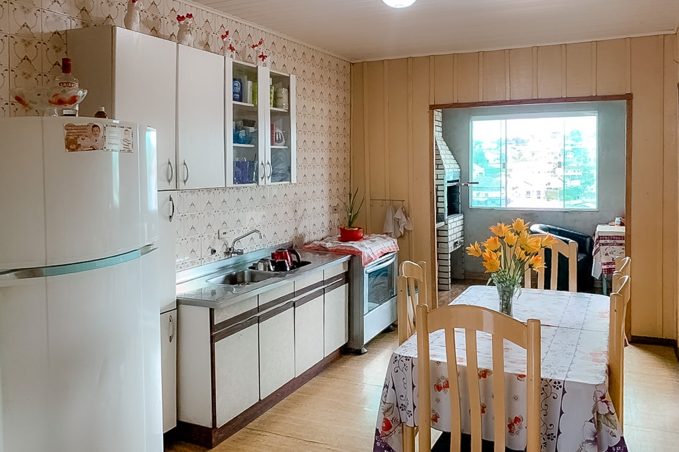 No piso inferior, em madeira, o imóvel conta com 2 dormitórios, banheiro, duas salas (TV e estar), cozinha separada e churrasqueira, criando um ambiente aconchegante para morar, receber visitas ou transformar em área social.