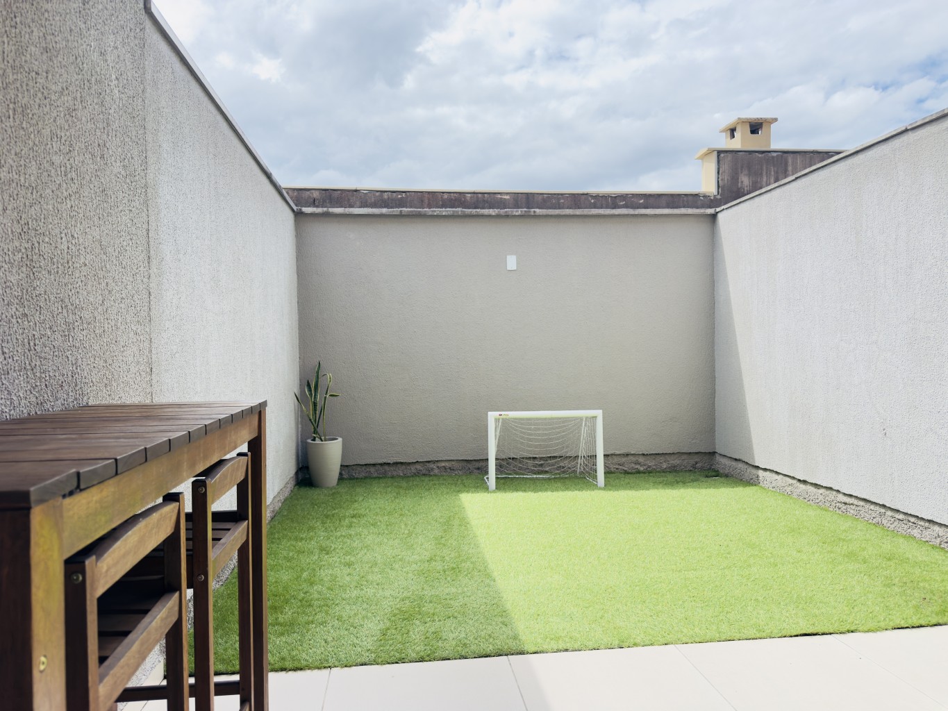 A iluminação e a ventilação natural são pontos fortes: o sobrado fica em rua mais alta e não tem prédios ao redor, o que deixa os ambientes super iluminados e arejados ao longo do dia. Nos fundos, há um bom espaço externo, com churrasqueira e área para aproveitar com família, amigos, crianças ou pets. A área de serviço é separada e coberta, facilitando a rotina. Na frente, você conta com vaga de garagem para dois carros.