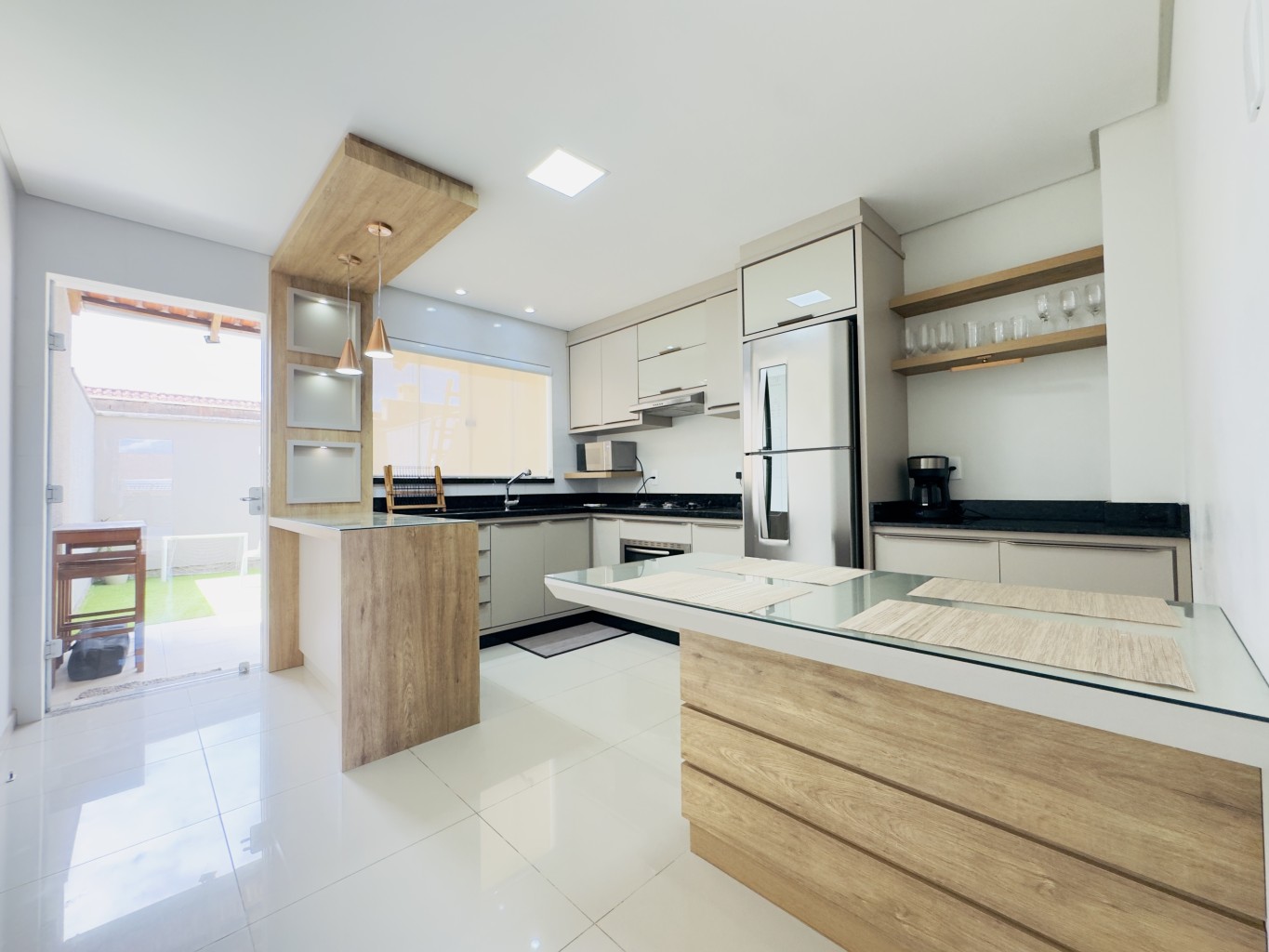 O imóvel tem aproximadamente 5 anos e está muito bem conservado. Ficam no sobrado os móveis sob medida, o que traz mais funcionalidade e economia para quem está comprando, já que boa parte da marcenaria já está pronta e bem ajustada aos ambientes. O piso em cerâmica facilita a manutenção e combina com o estilo prático do imóvel. Nos acabamentos, portas brancas e rebaixo em gesso ajudam a criar um visual mais moderno e clean.