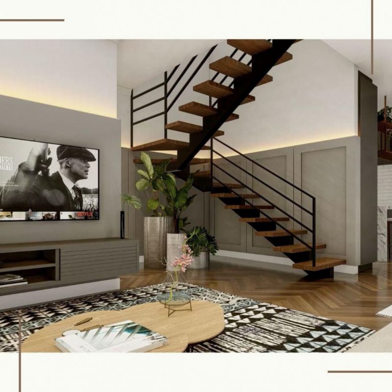 O primeiro andar é constituído por hall de entrada, lavabo e sala de TV, sala de jantar e cozinha integrados, dando amplitude a todos os espaços. Já no segundo andar encontramos duas amplas suítes bem arejadas e ricas de iluminação natural.